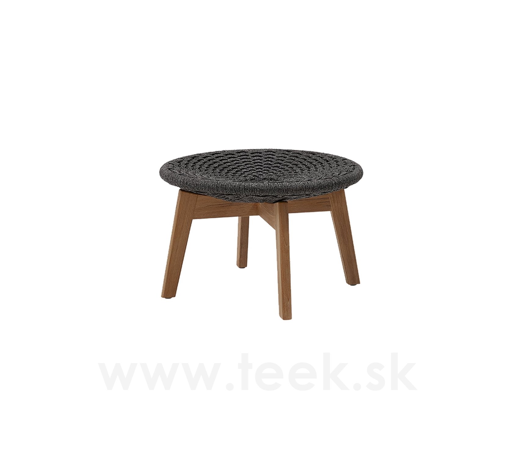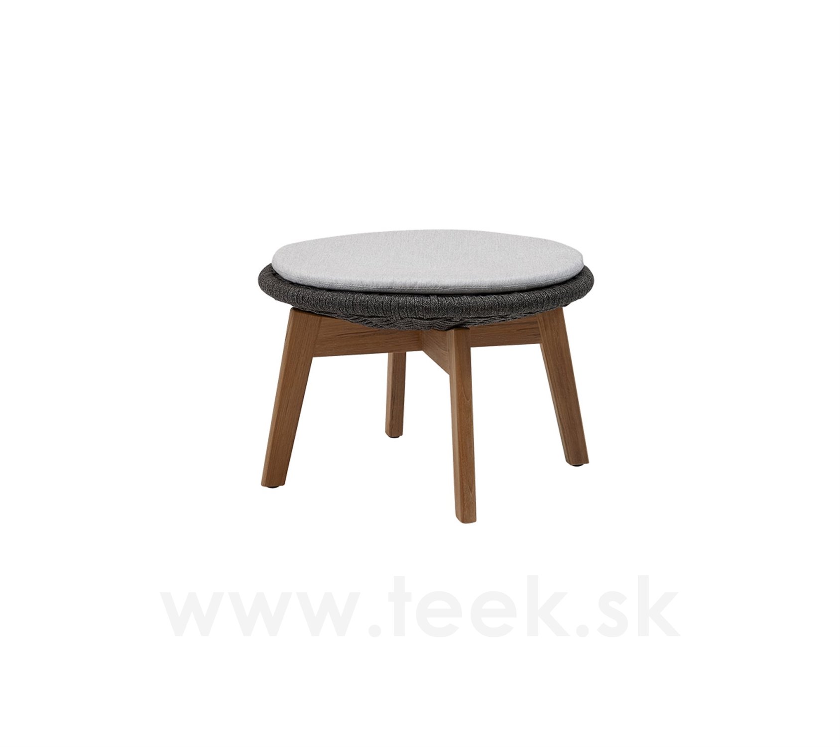 Podnožka Peacock, Cane-line, kulatá 60x40 cm, nohy teak, výplet lanko Soft Rope dark grey