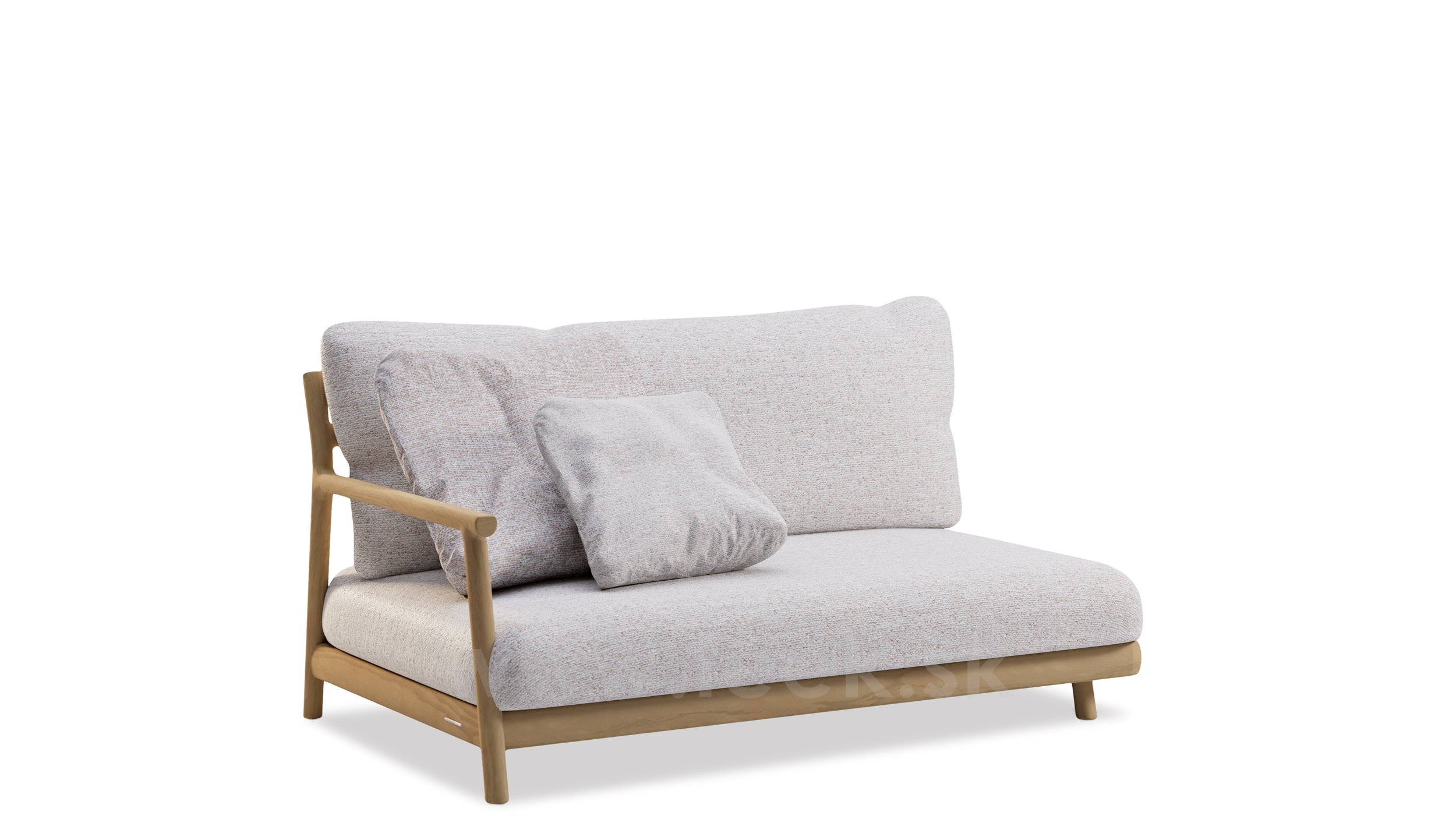 The sofa has a frame made of natural teak wood.