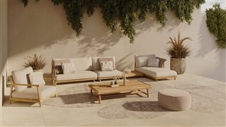 Pohovka má rám z prírodného teakového dreva.