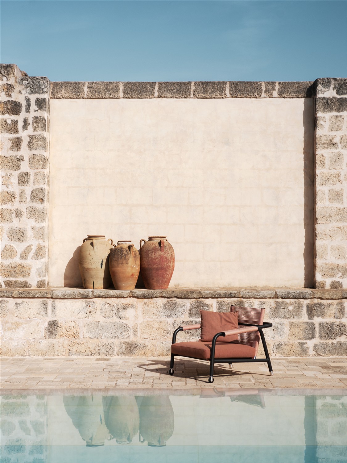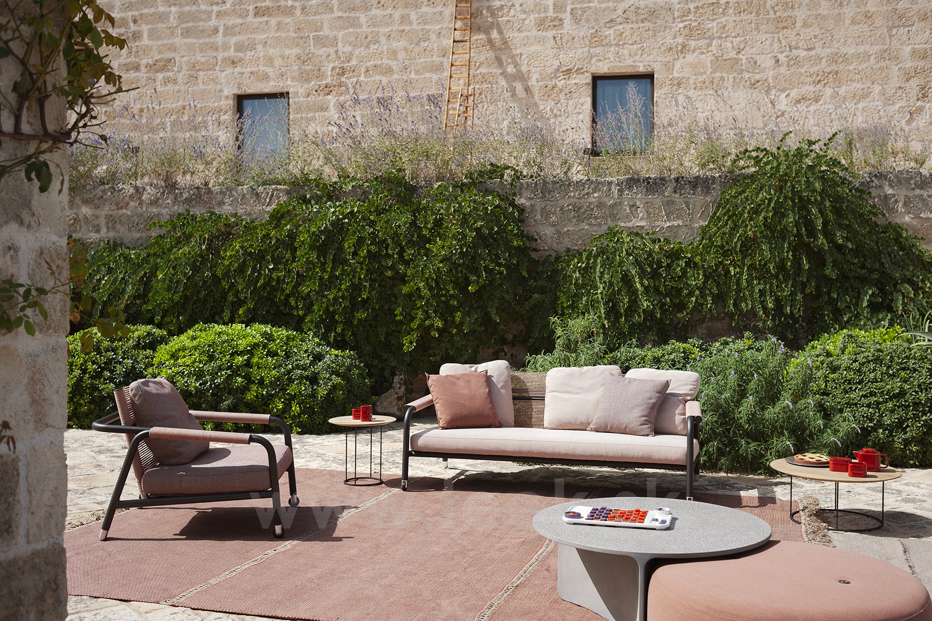 Kolekcia obsahuje nízke kreslo s nízkym a vysokým operadlom spolu s pohovkou.