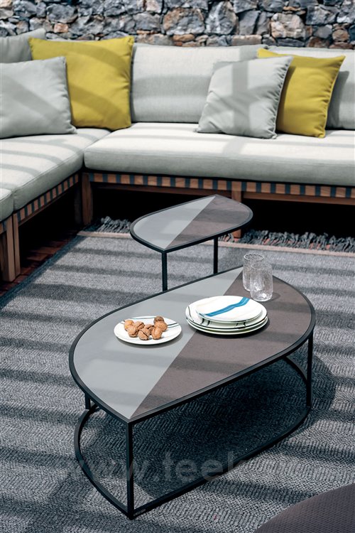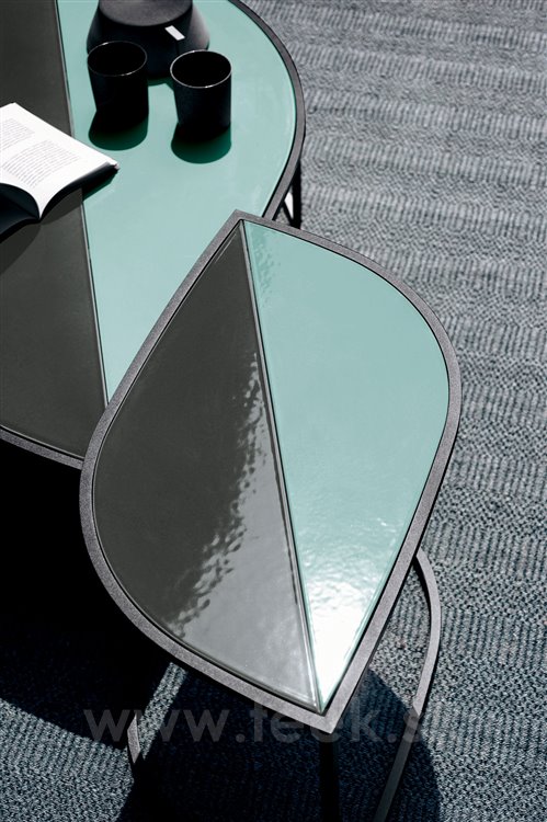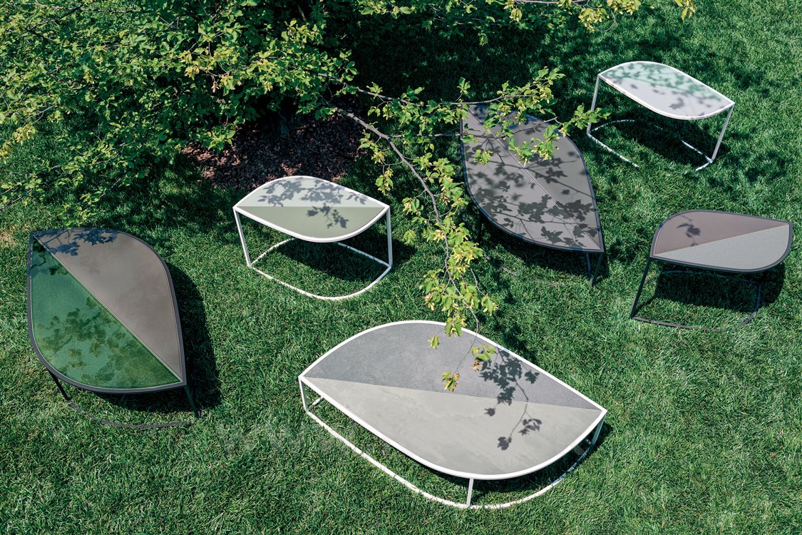 The Leaf collection from Roda has a painted stainless steel construction combined with a ceramic top. The collection includes coffee and storage side tables with ceramic top (with or without glaze).