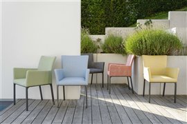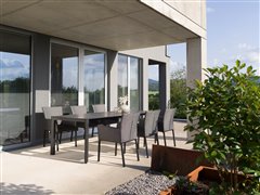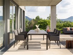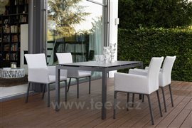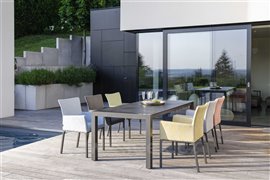 The fillings of the garden chairs are made of quick-drying foam, you can leave them outside all year round. A stylish table is also available in stainless steel. The chairs can be perfectly combined with the Artus Lounge low chairs.