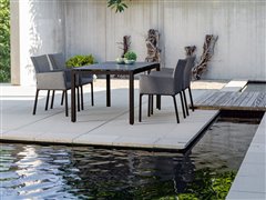 Stern's collection of comfortable padded Artus garden dining and bar chairs. The collection has an aluminium, teak or stainless steel frame.