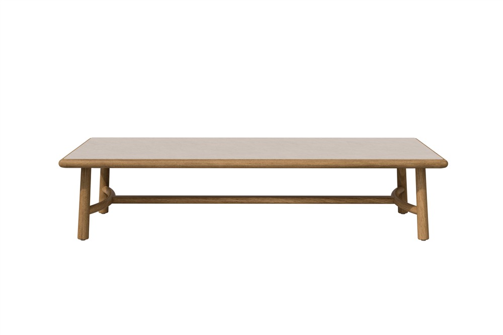 Ukiyo Coffee Table by Tribu, 160 × 70 cm, teak & ceramic
