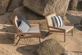 Sedací a relaxačný nábytok z teakového dreva s lanovým výpletom.