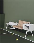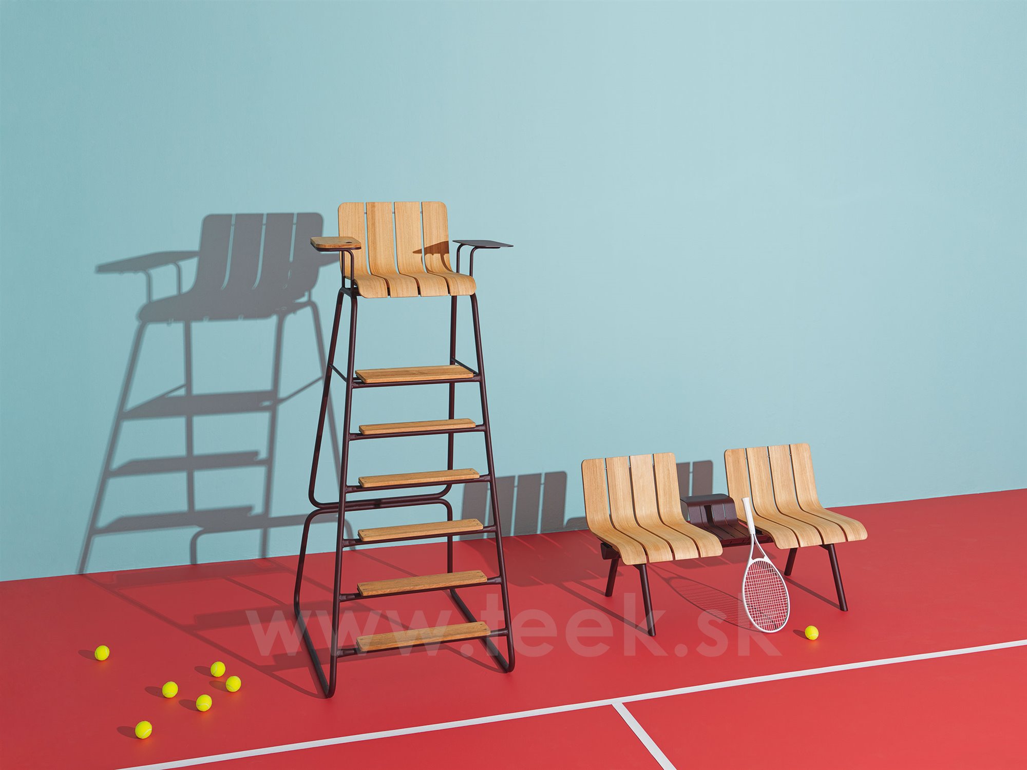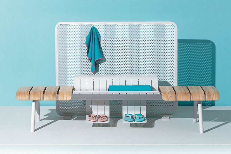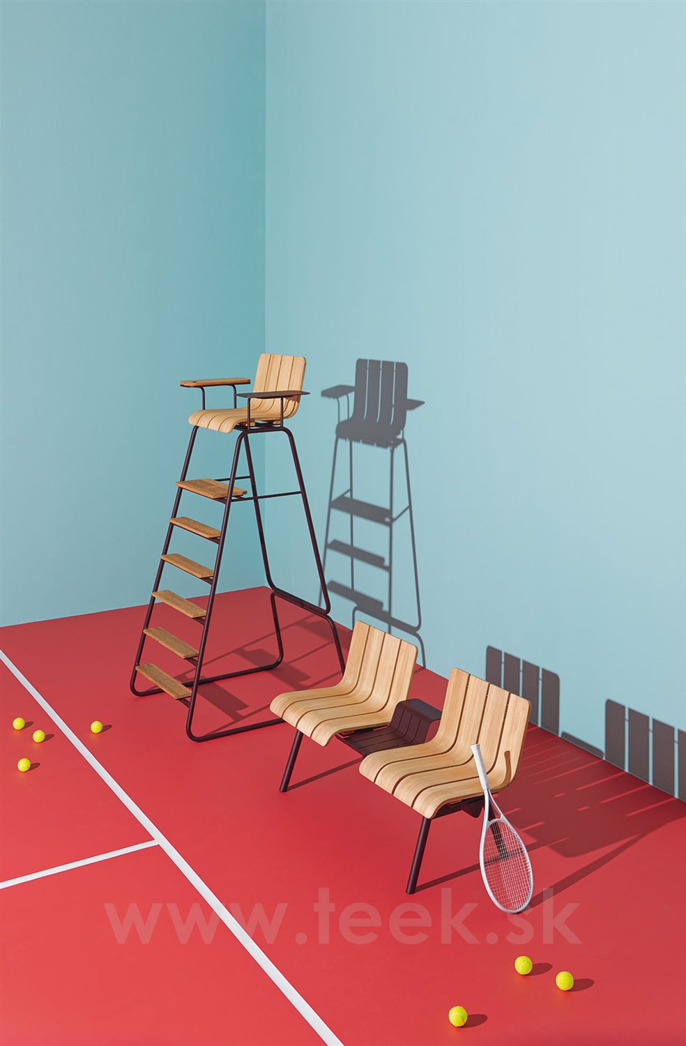 Inovatívne charakteristické krivky teakového dreva prepožičiavajú tvar profilom lavičiek - skutočnému ústrednému bodu tejto kolekcie.