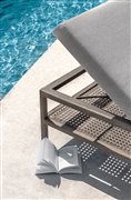 Ležadlo z teakového dreva. Rám je vyrobený z prírodného alebo moreného teakového dreva s káblovým výpletom a vonkajšími textíliami.