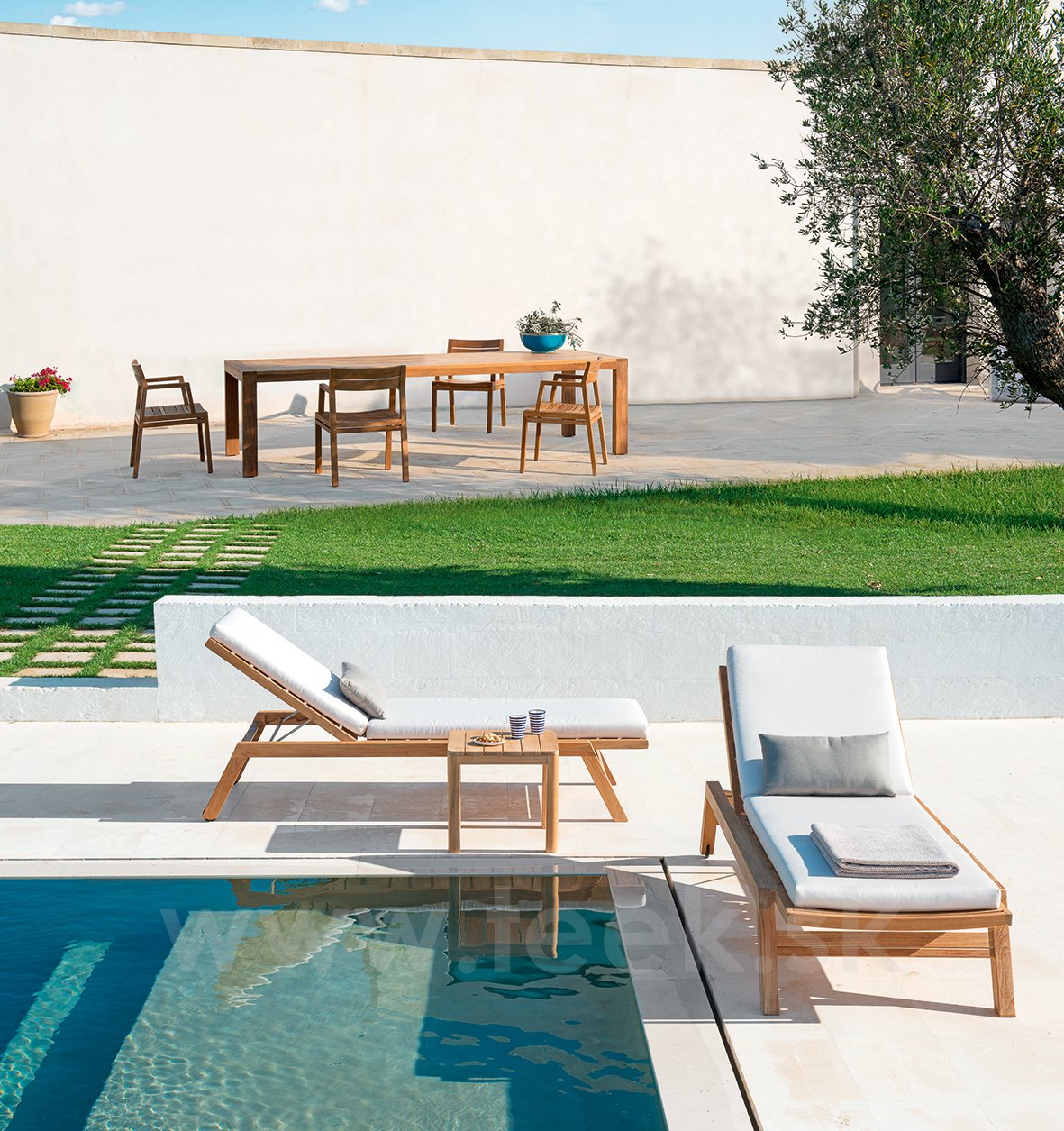 Záhradné ležadlo z teakového dreva s možnosťou dokúpenia vonkajšieho matraca.