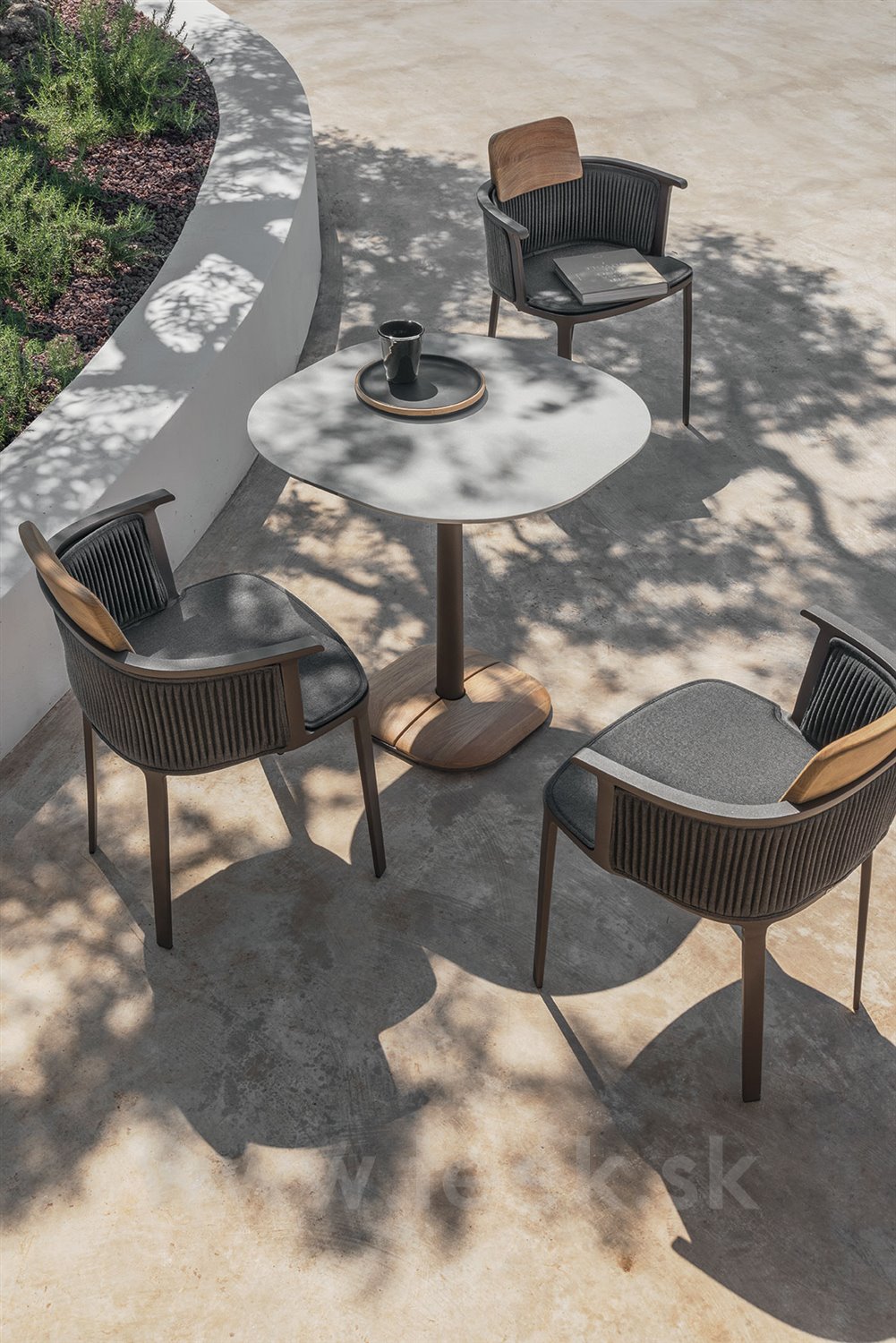 Jedálenská súprava Nicolette je vyrobená z tlakovo liateho hliníka a vyznačuje sa oblými tvarmi, čím sa spája technológia a dizajn a vytvára robustné a sofistikované riešenie pre vonkajšie priestory a elegantné vnútorné prostredie.