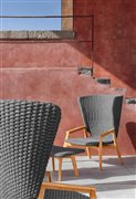 Knit Dining je kolekcia kresiel, pohoviek a konferenčných stolíkov z teakového dreva a tkaného lana, ktoré s rafinovanosťou vyjadrujú dokonalú syntézu estetiky, funkčnosti a ergonómie. Ikonická kolekcia je obohatená o novú verziu z moreného teakového dreva a svetlosivého lana a o hojdacie kreslo s vysokým operadlom, ktoré ponúka novú a špeciálnu interpretáciu klasického bergére.