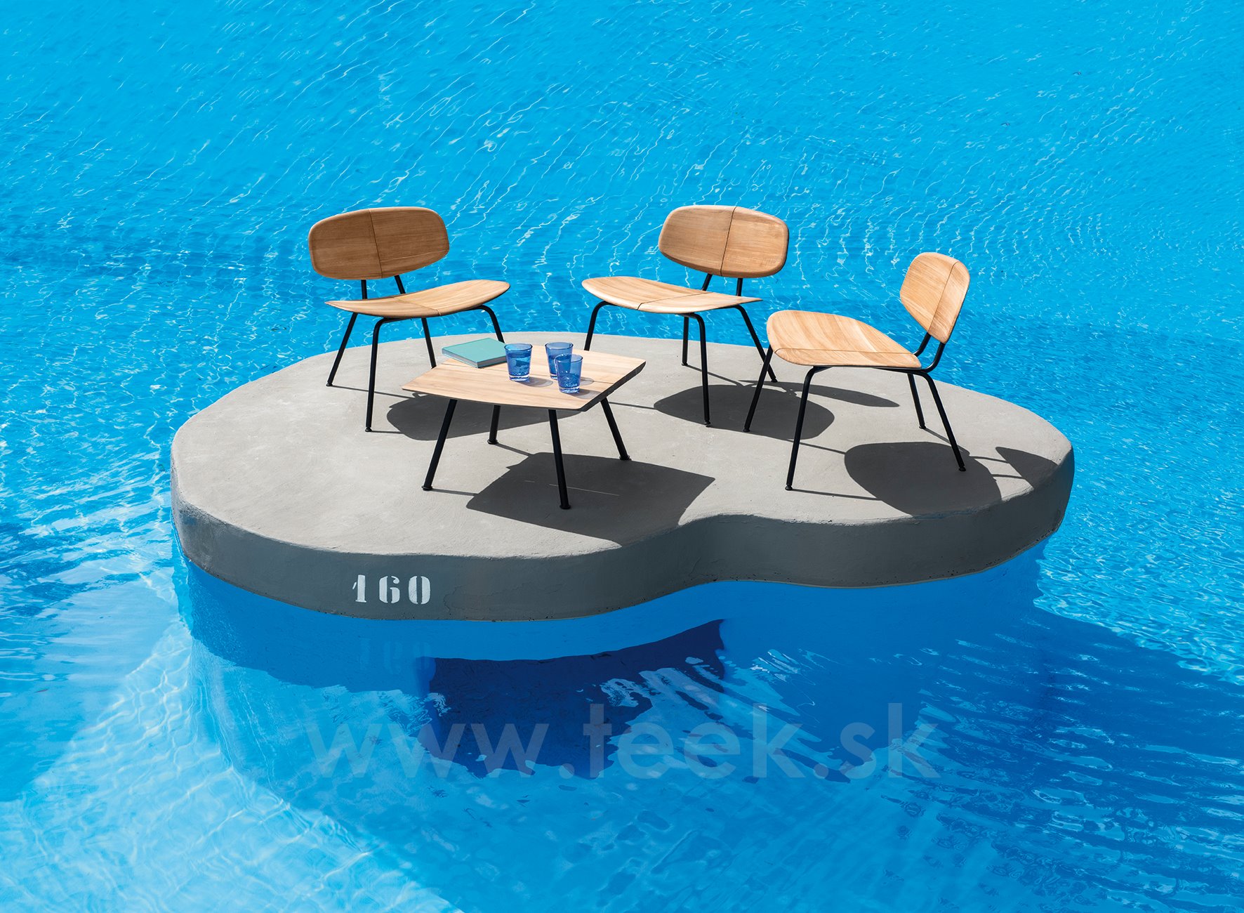 Sedací nábytok z teakového dreva a ocele.