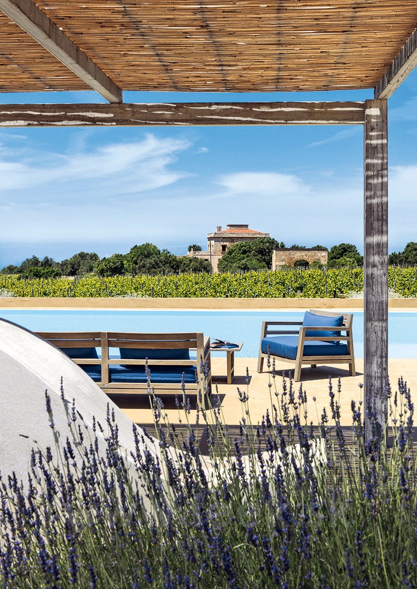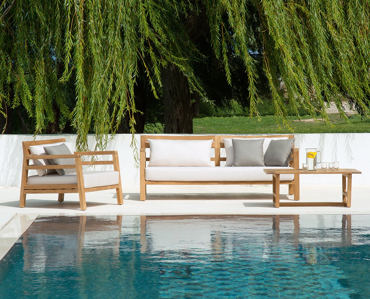 Pohovky a ležadlá zariaďujú otvorené priestory na relaxáciu a pohodlie v spojení s prírodou.
