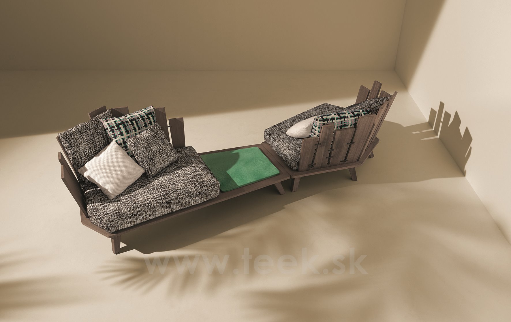 Rafael je kolekcia s neobvyklým vzhľadom a silným charakterom, ovplyvnená všestrannosťou a pominuteľnosťou prírody. Robustné konštrukcie z brúseného teakového dreva s kovovými sponami dodávajú nádych remeselnej zručnosti.