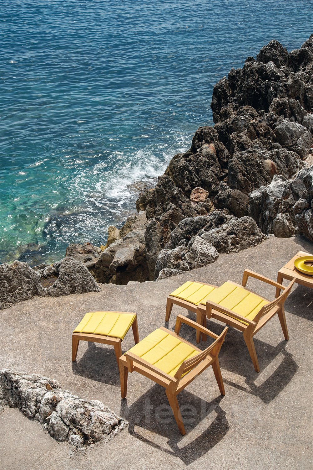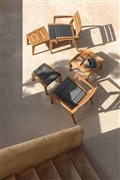 Kolekcia Ribot, ktorá je vyváženým príkladom estetiky a funkčnosti, sa vyznačuje elegantným použitím teakového dreva.