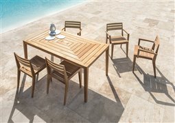 Vyvážený príklad estetiky a funkčnosti. Kolekcia Ribot sa vyznačuje elegantným použitím teakového dreva.