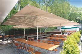 PALAZZO® Noblesse je profesionálny slnečník určený na použitie v reštauráciách, hoteloch, komerčných zariadeniach alebo pre náročných súkromných zákazníkov. Je k dispozícii do veľkosti 700 cm (okrúhly), 600x600 cm (štvorcový) alebo 600x500 cm (obdĺžnikový). Samozrejme, možno ho doplniť elektrickým pohonom, diaľkovým ovládaním, LED osvetlením a infračerveným vyhrievaním.