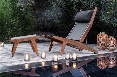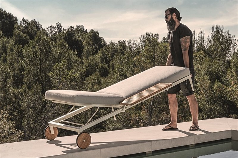 Dizajnové lehátka z teakového dreva.