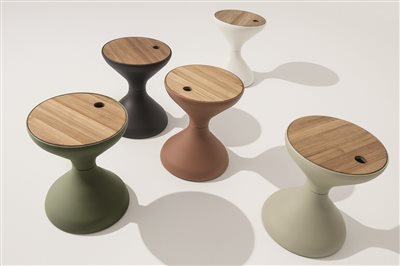 Dizajnové vonkajšie odkladacie stoly v niekoľkých farbách.