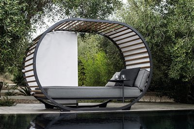 Dizajnová vonkajšia posteľ.
