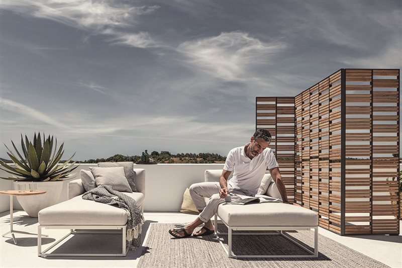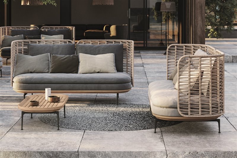 Dizajnová modulárna súprava na vonkajšie sedenie.