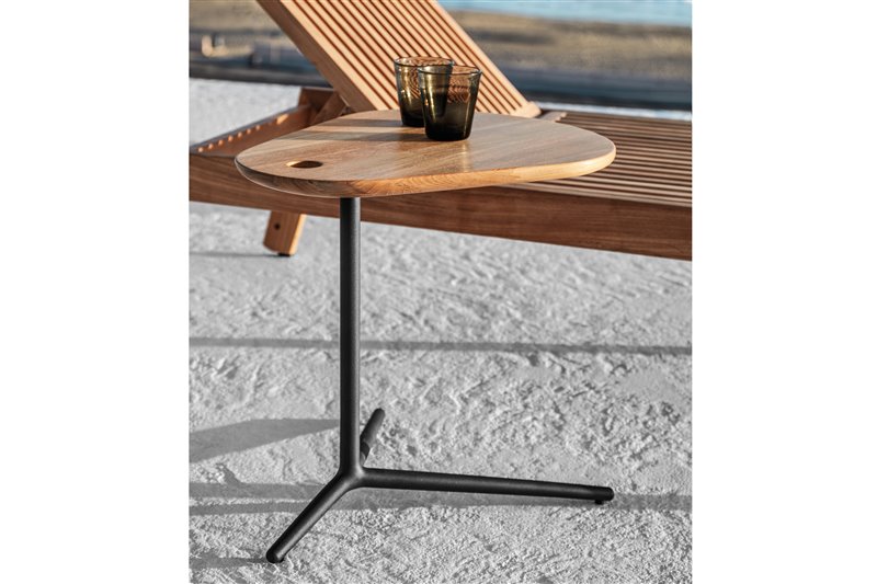 Odkladací stolík s vrchnou doskou z teakového dreva.
