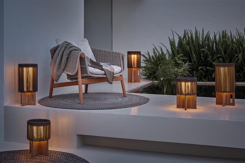 Kolekcia záhradného osvetlenia, dizajnové prenosné, závesné a samostatné vonkajšie svietidlá.