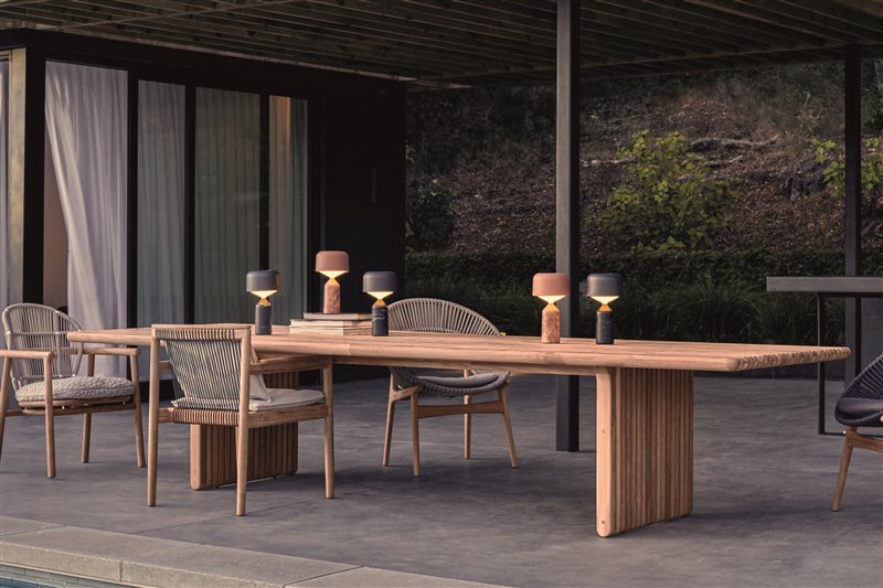Kolekcia vonkajšieho jedálenského nábytku.