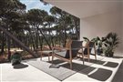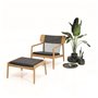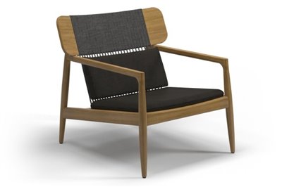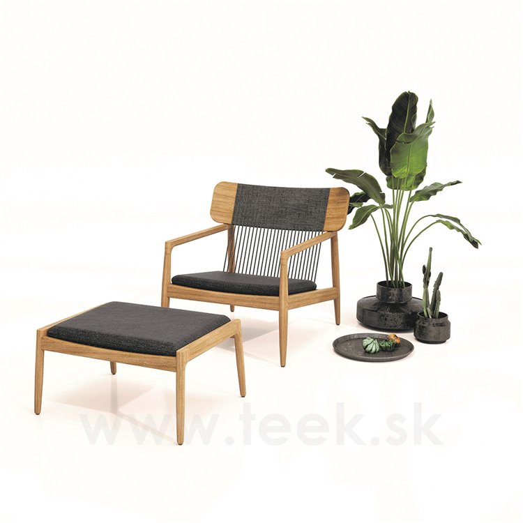 Moderné celodrevené kreslá na odpočinok s detailmi výpletu z lana.