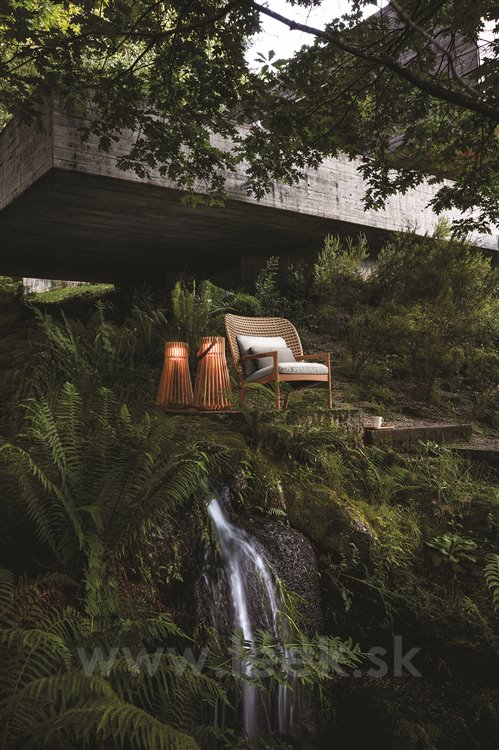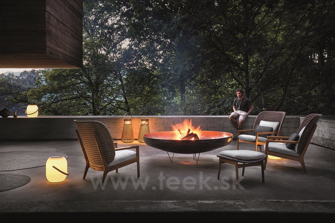Dizajnový záhradný nábytok z teakového dreva a umelého ratanu.