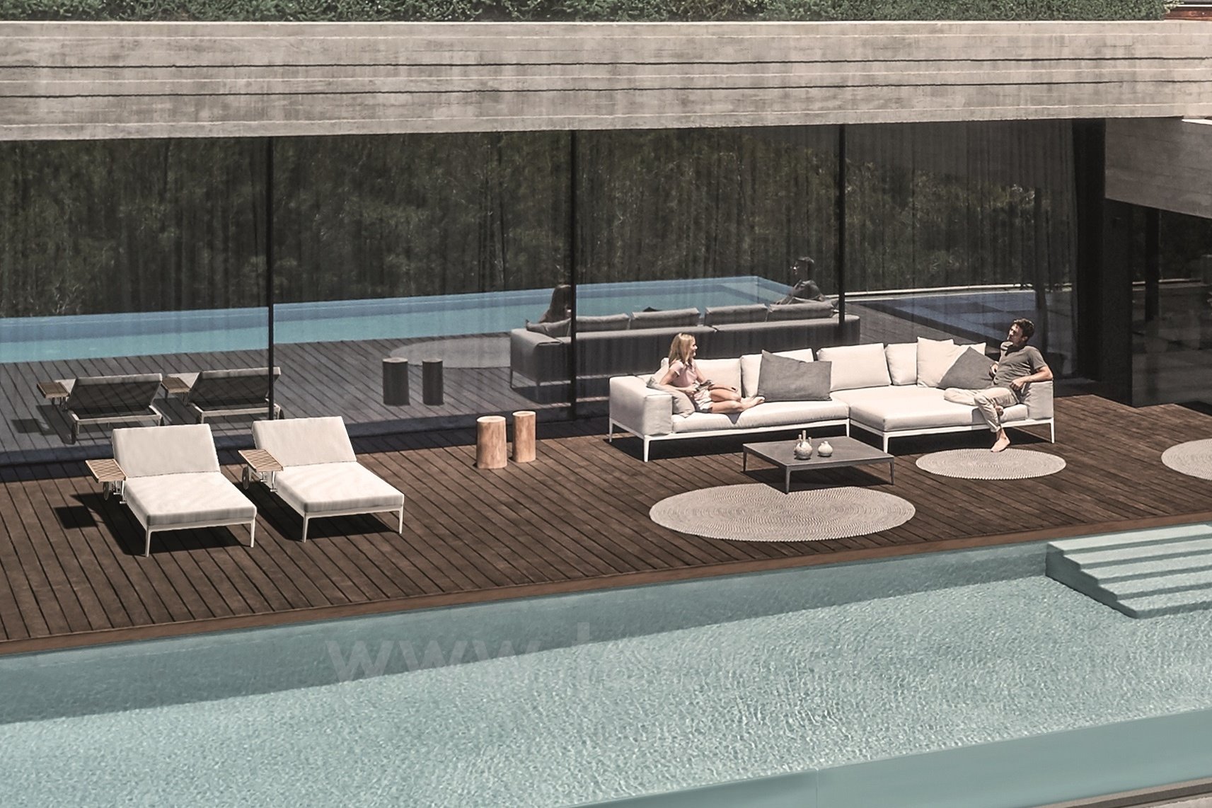 Zahradní lehátka lze kombinovat s venkovní sedací sestavou