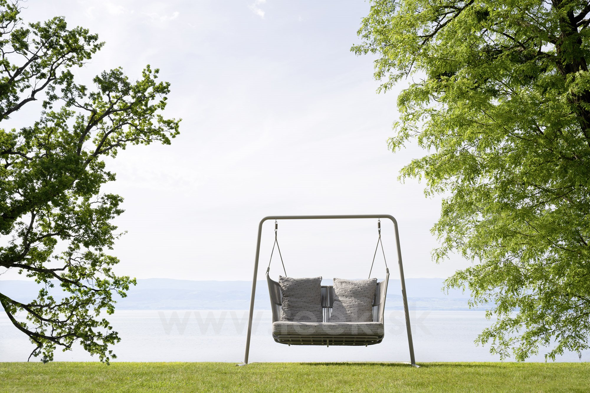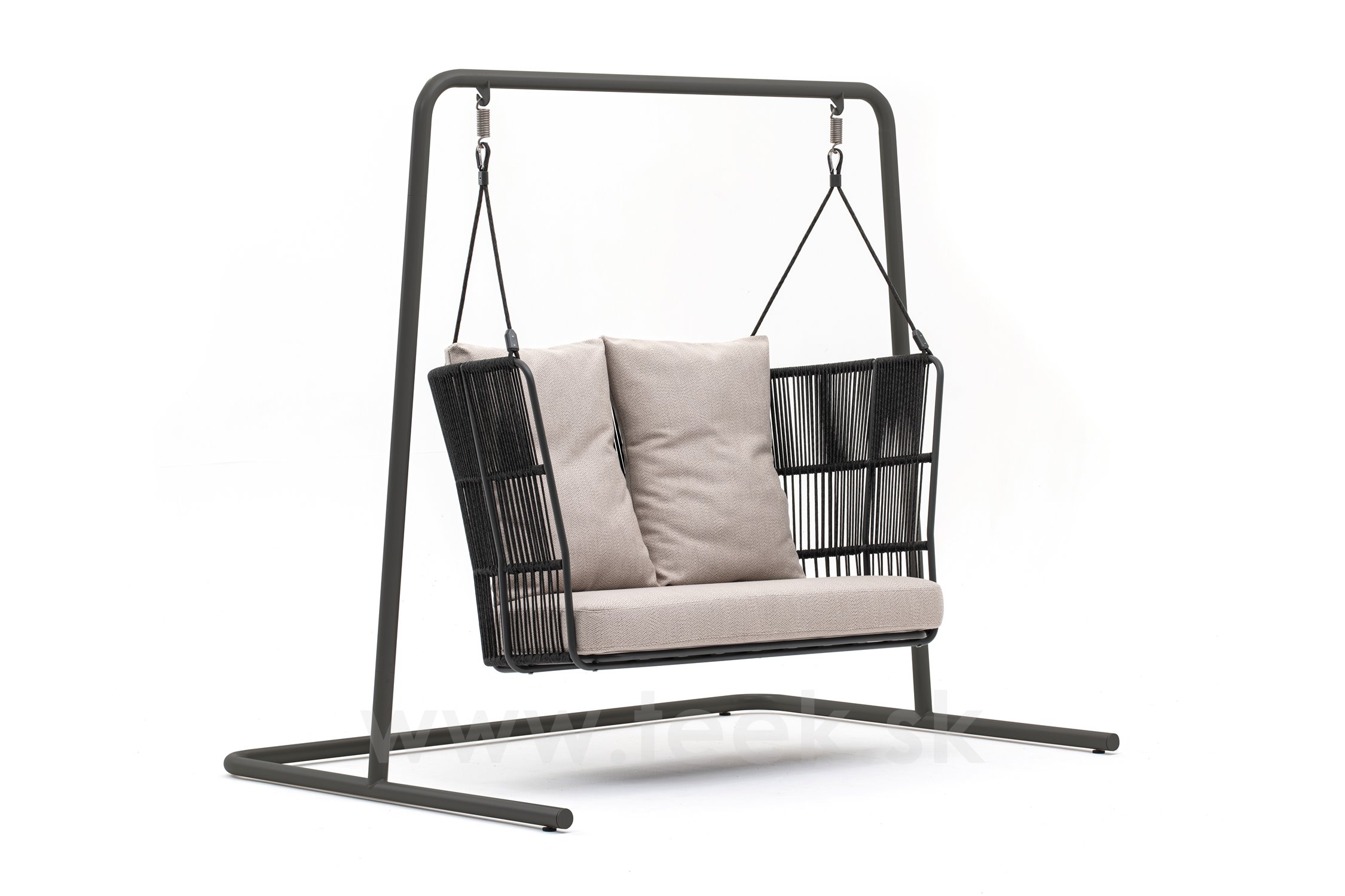 Rám houpačky z lakovaného hliníku s lankovým výpletem.