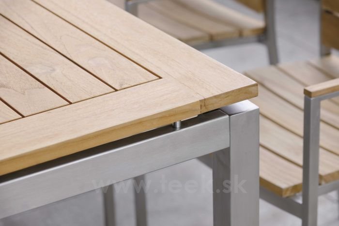 Jídelní stůl Classic, Stern, čtvercový 90x90x73 cm, profil nohou čtvercový, rám nerezová ocel, deska teak