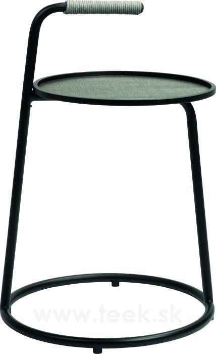 Konferenčný stolík Edi, Stern, okrúhly 48x71 cm, čierny matný lakovaný hliník, vrátane textilnej podložky ľanovo sivá