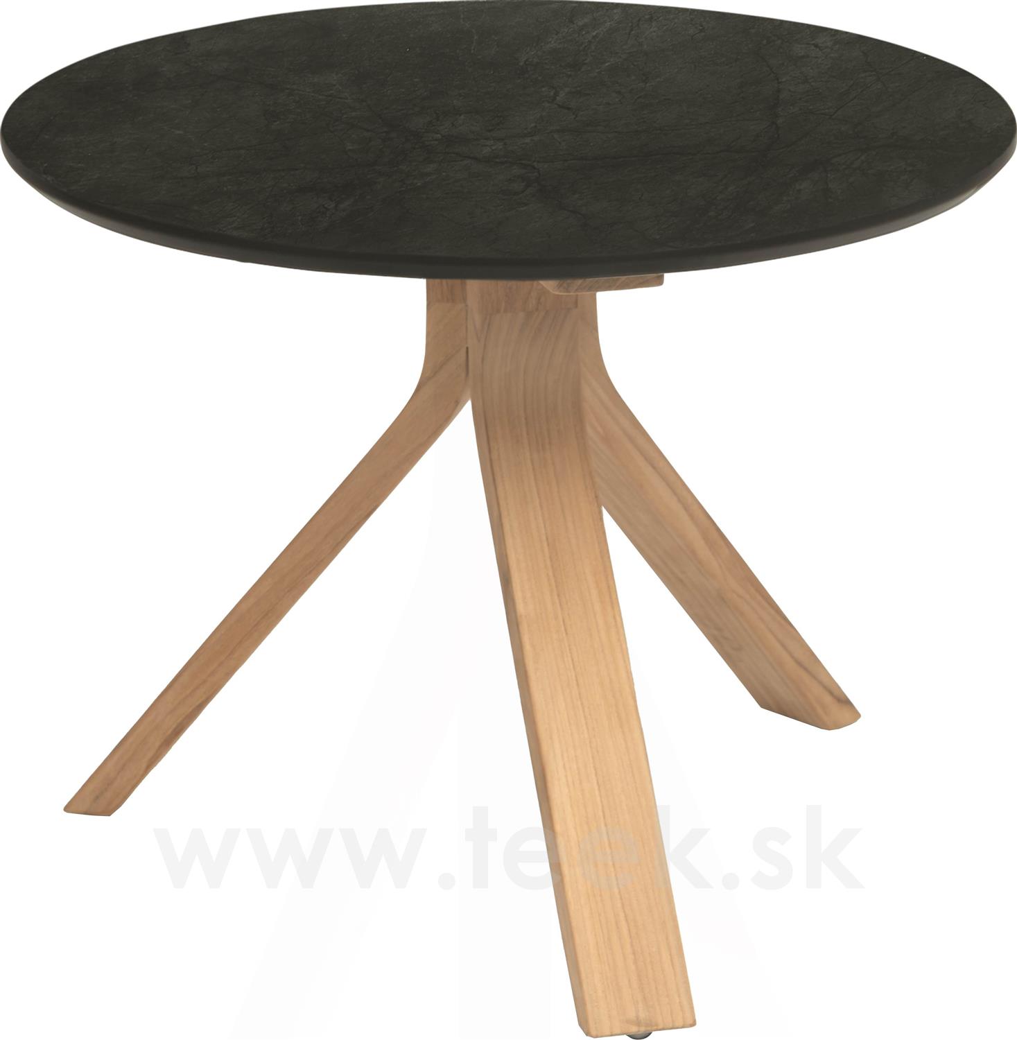 Konferenčný stolík Freddie, Stern, okrúhly 60x47 cm, teakový rám, dekor HPL Silverstar 2.0 podľa vzorkovníka