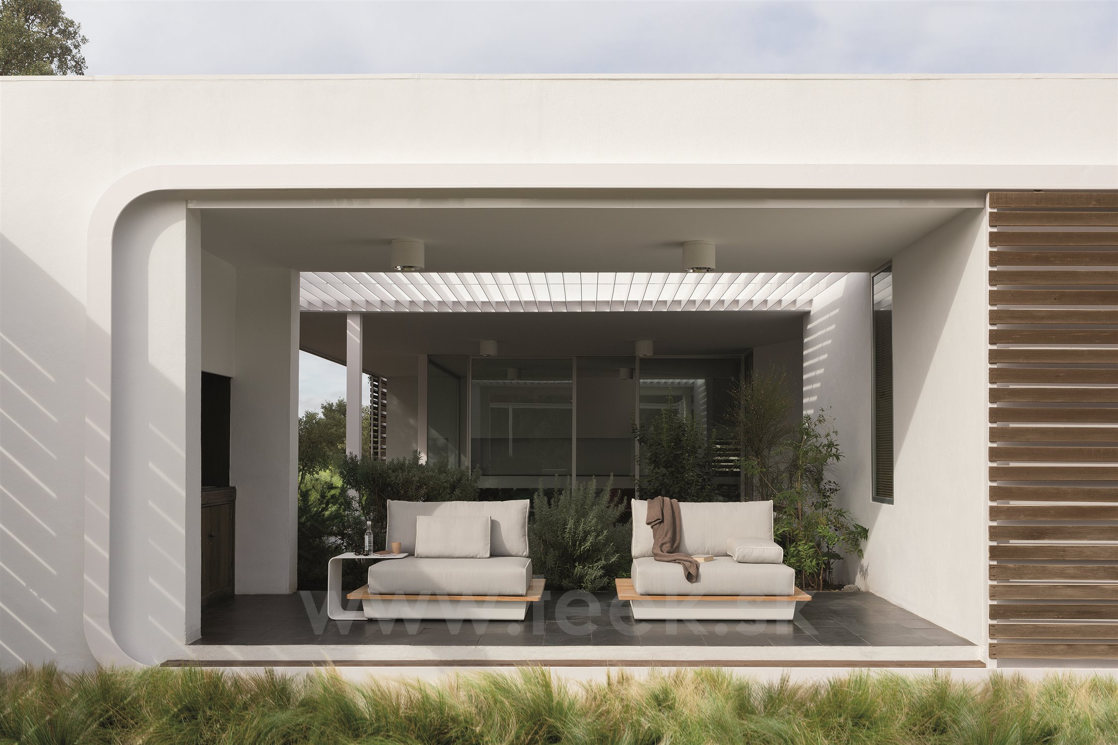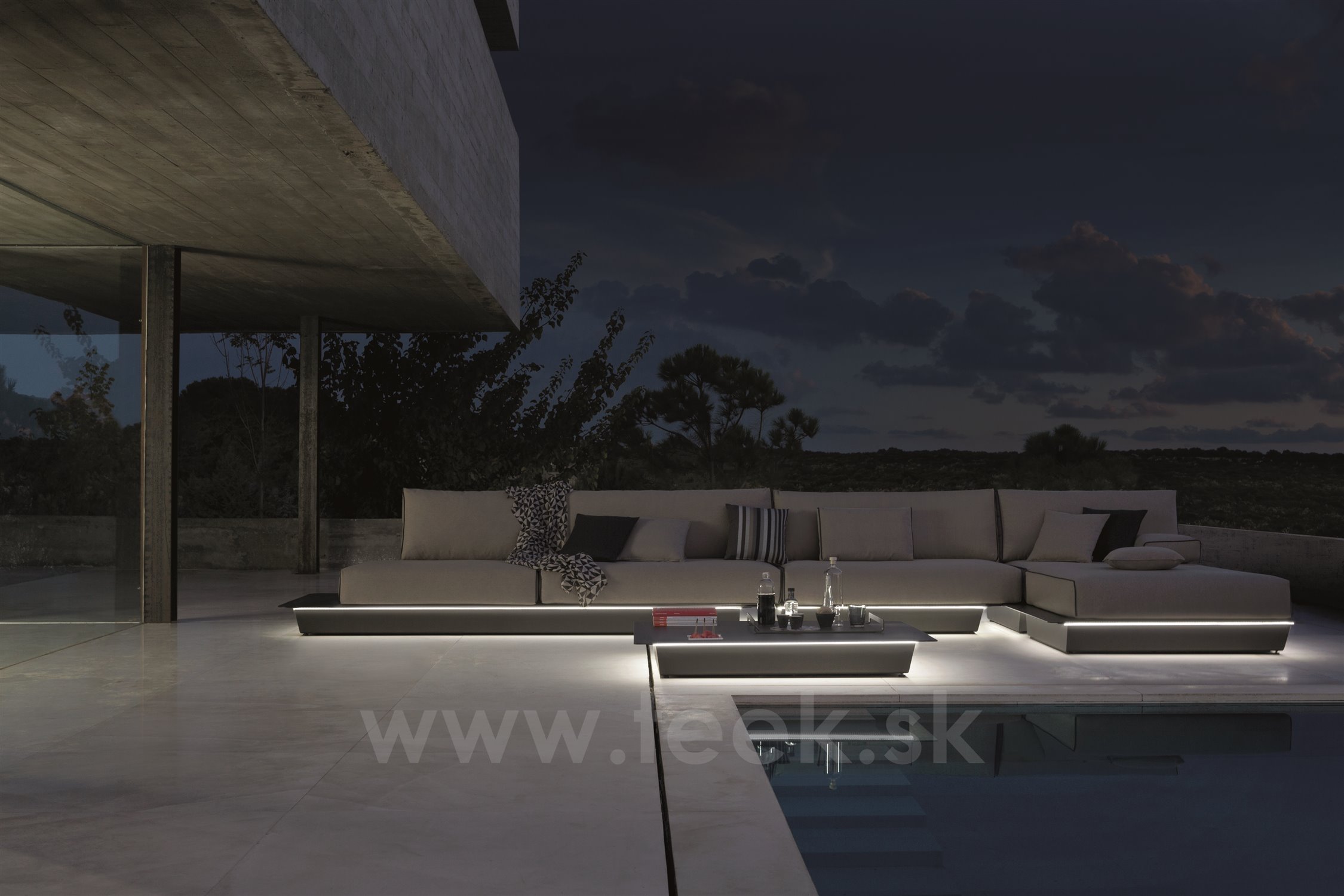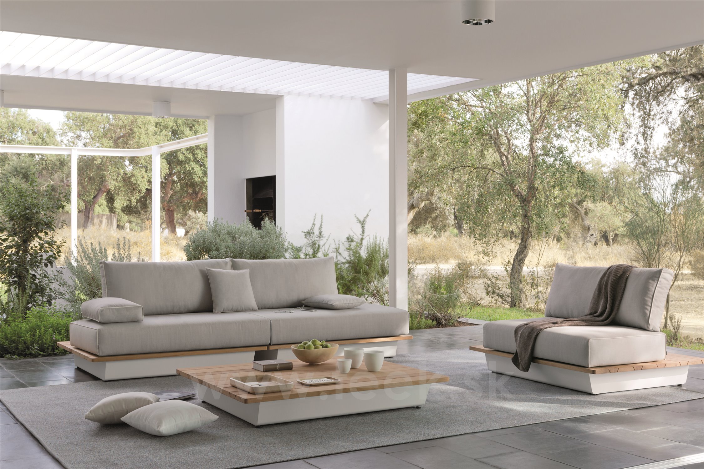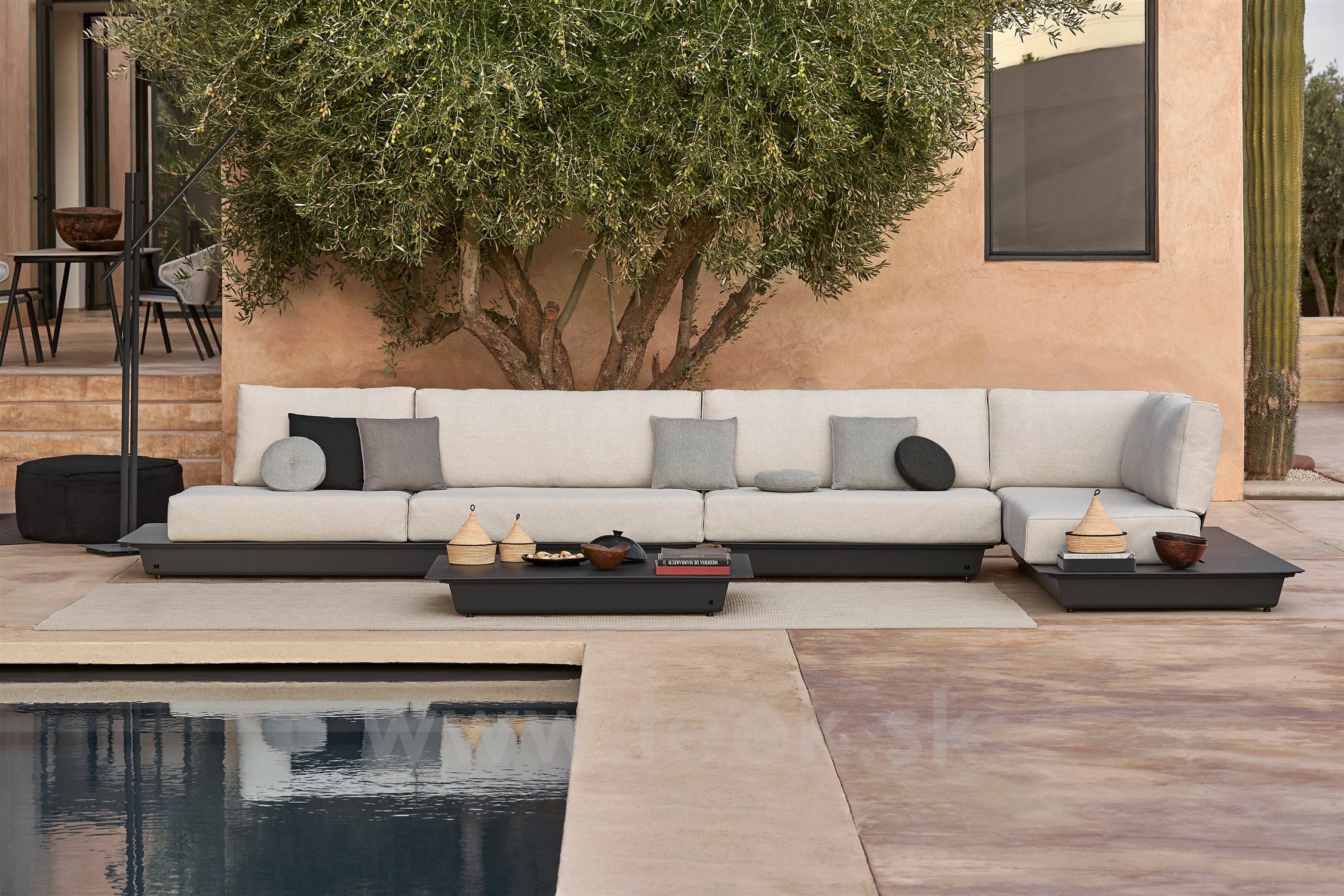 Luxusná vonkajšia modulárna sedacia súprava Air. Lakovaný rám z nehrdzavejúcej ocele, hliníková vrchná doska (lakovaná vo farbe rámu). Vonkajšie prevedenie sedákov a operadiel, možnosť osvetlenia jednotlivých modulov pásovými LED svietidlami. Unikátny dizajn operadla s nastavením sklonu, vysoká modularita kolekcie.