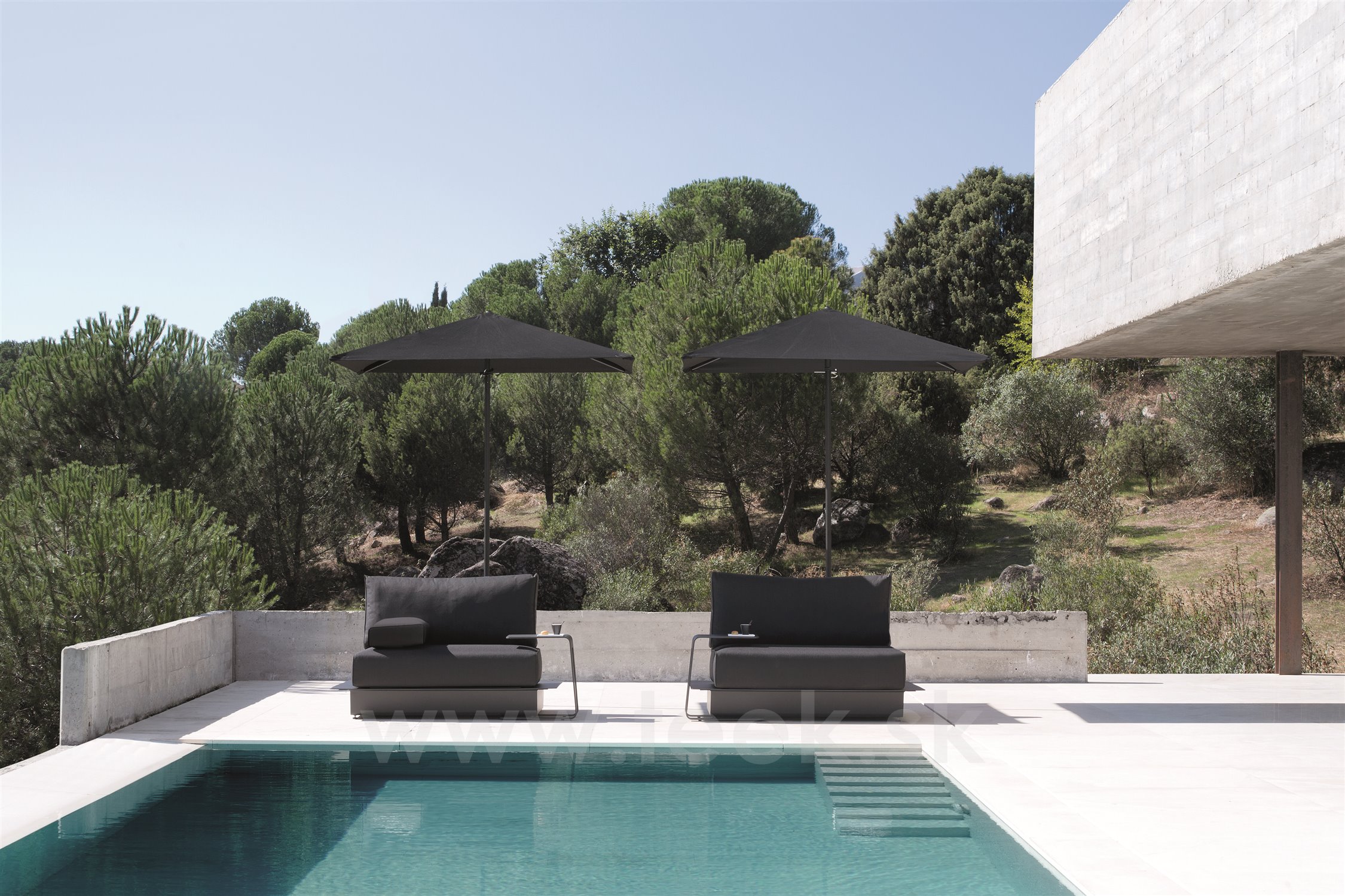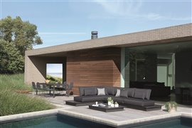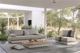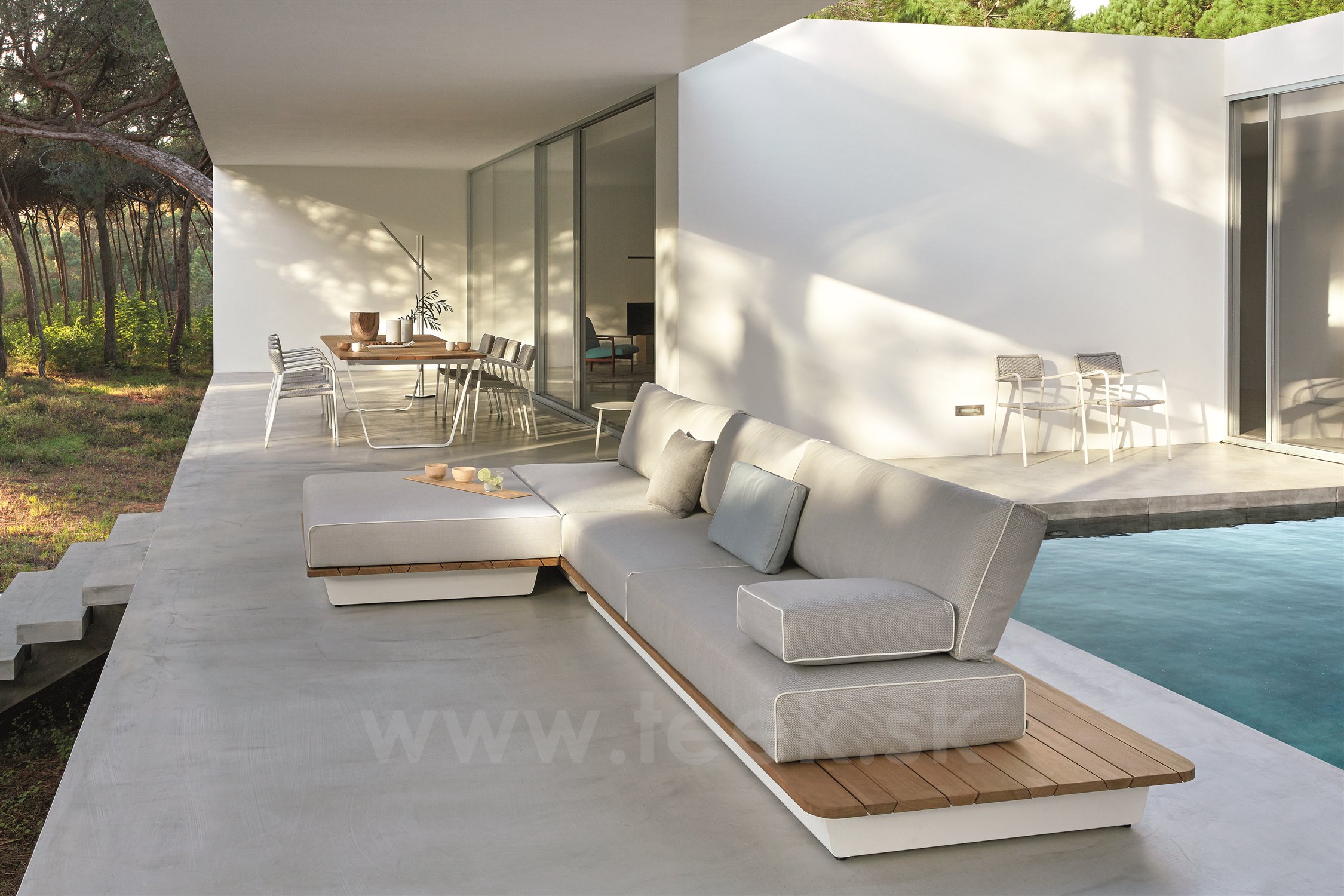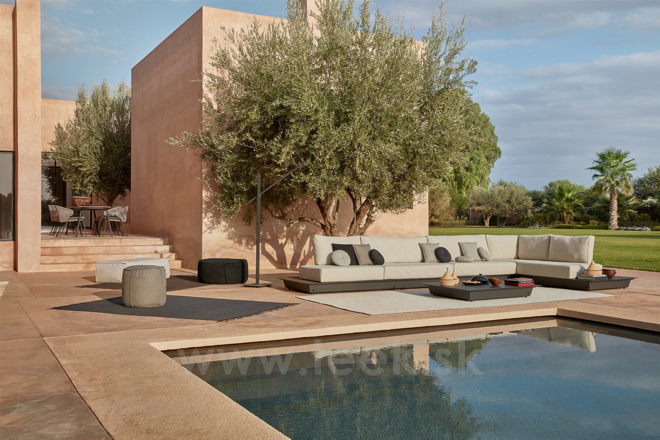 Luxusná vonkajšia modulárna sedacia súprava Air. Lakovaný rám z nehrdzavejúcej ocele, hliníková vrchná doska (lakovaná vo farbe rámu). Vonkajšie prevedenie sedákov a operadiel, možnosť osvetlenia jednotlivých modulov pásovými LED svietidlami. Unikátny dizajn operadla s nastavením sklonu, vysoká modularita kolekcie.