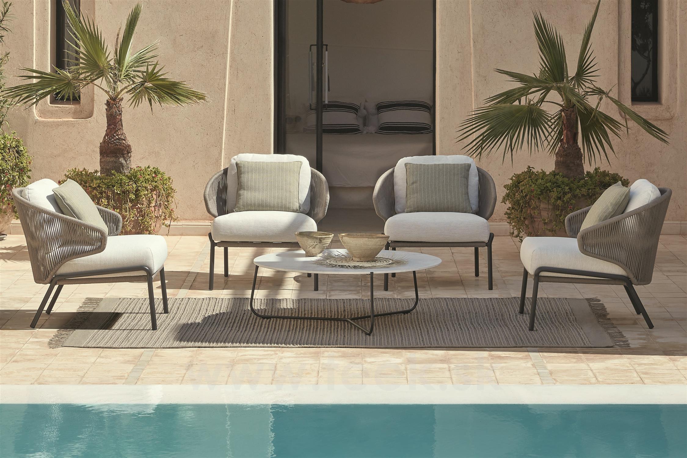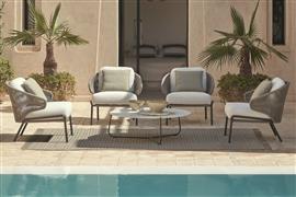 Relaxačný záhradný nábytok možno doplniť jedálenskými záhradnými stoličkami z rovnakej kolekcie