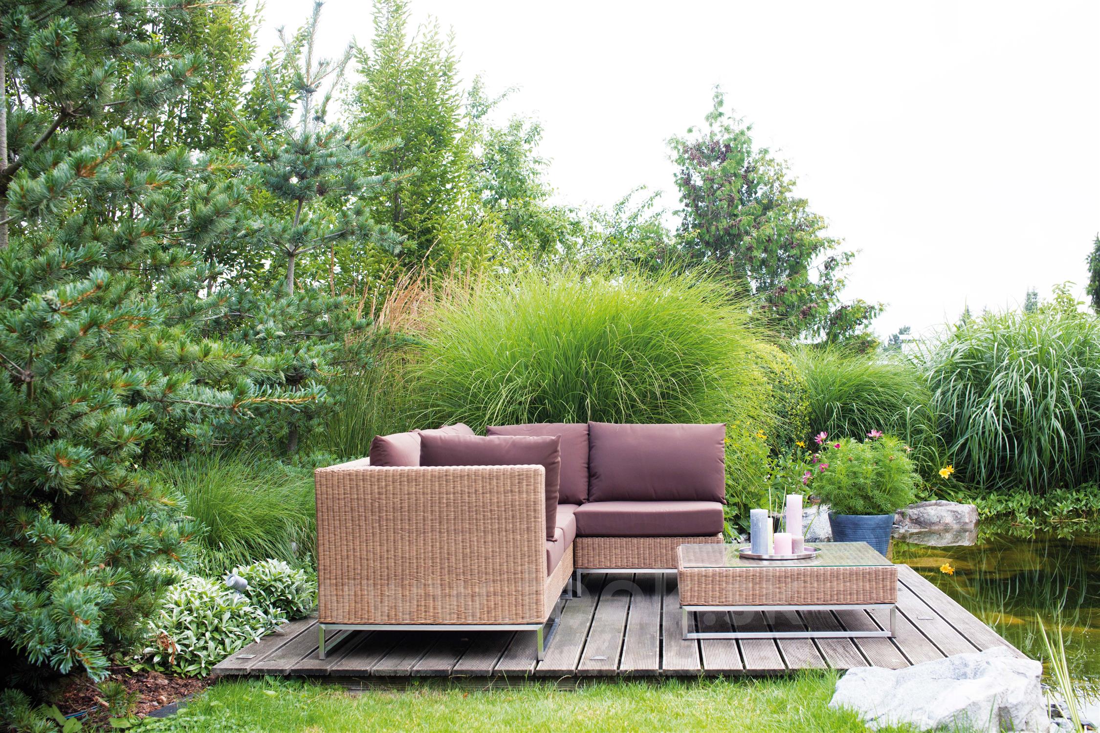 Body with seat cushions for low/dining centre piece Fontana, Stern, 87x87 cm, Cinnamon brown rattan, seat cushions 100% acrylic brown (fawn brown)