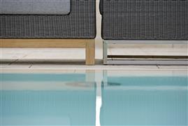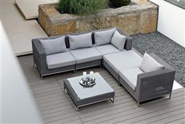 The seat cushions and back cushions are made of high quality outdoor acrylic fabric that is highly UV resistant. The cushion fillings are conventional foam, so they need to be protected from rain. On request, seat cushions with quick-drying foam filling can be purchased (at an additional cost - we will be happy to send you a quote, just specify which parts/colours you are interested in).