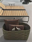 Praktické, ľahké a jednoducho premiestniteľné koše na uteráky alebo časopisy, inšpirované tkaným motívom Timeout Collection. Vyrobené z odolného EVA polyuretánu, dostupné v troch veľkostiach a obdĺžnikovom tvare, umožňujú skladanie pre minimalizáciu neporiadku. Ideálne na udržiavanie poriadku a elegantné doplnenie vonkajšieho priestoru.