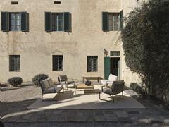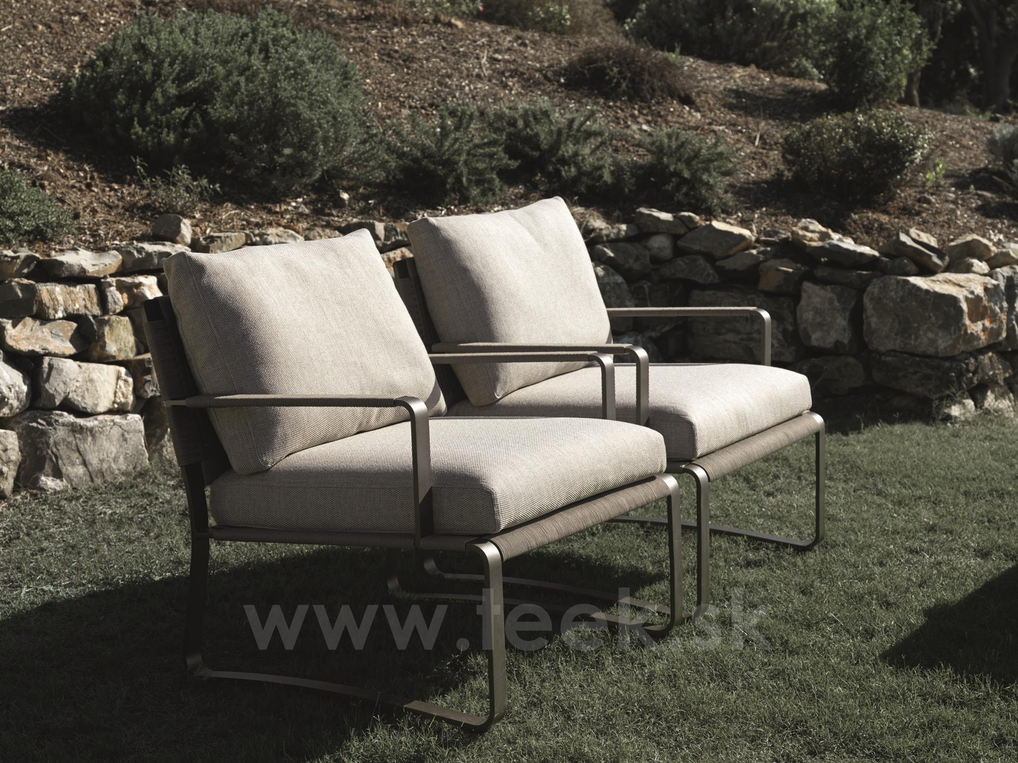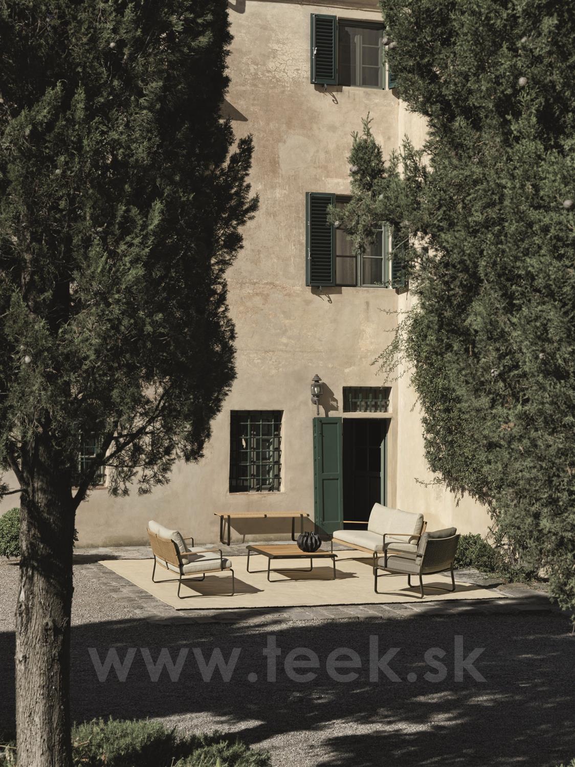 Elegantný vonkajší nábytok s dvojmiestnou pohovkou, priestranným kreslom a konferenčným stolíkom. Lakovaná hliníková konštrukcia s ručne tkaným polypropylénovým čalúnením kombinuje minimalistický dizajn s komfortom a nadčasovou eleganciou.