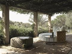 Pohodlný taburet/puf v dvoch veľkostiach s ručne tkanou textúrou.