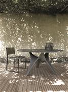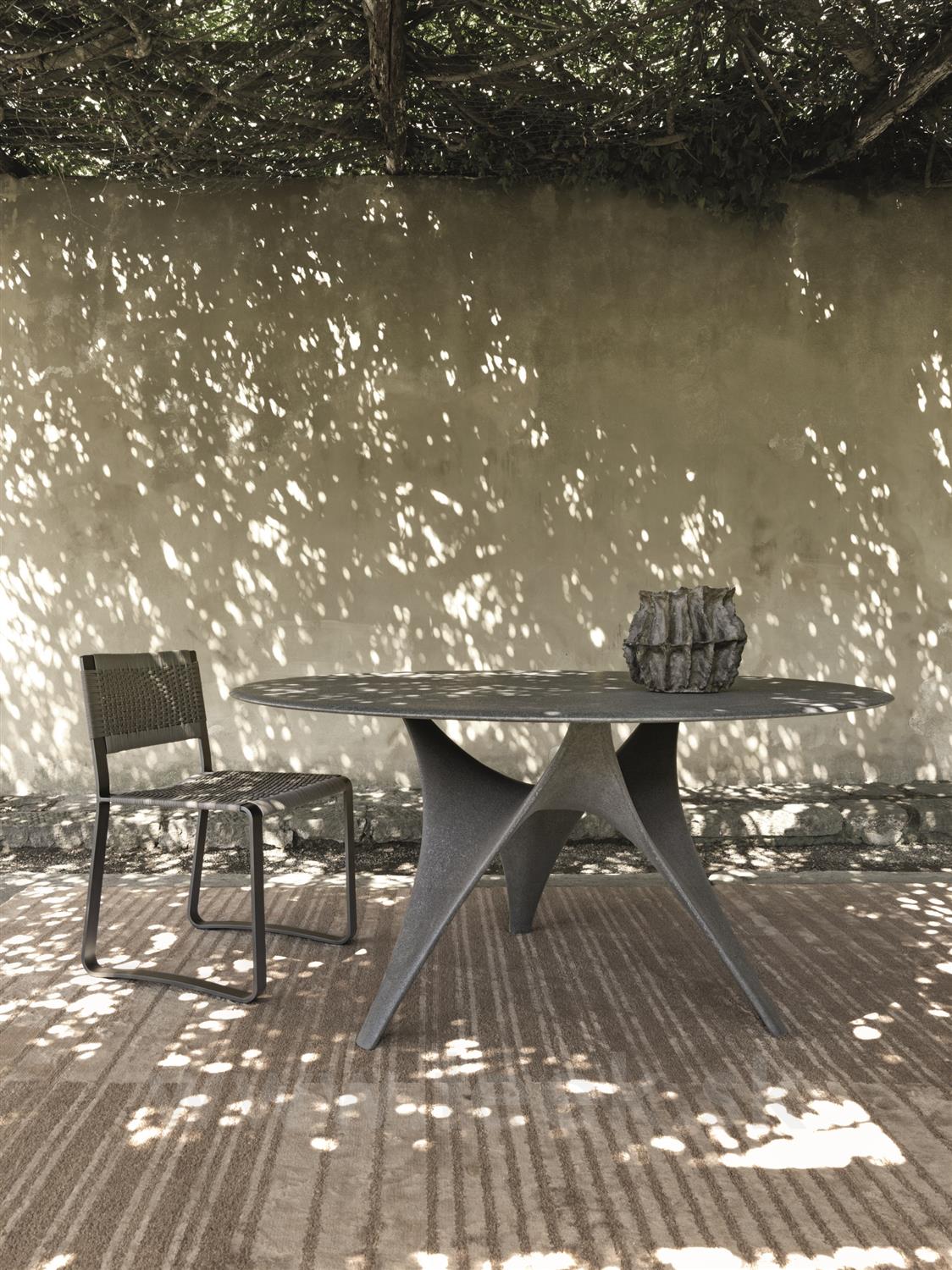 Vonkajší jedálenský stôl Arc od Foster + Partners je vonkajší sochársky kúsok.