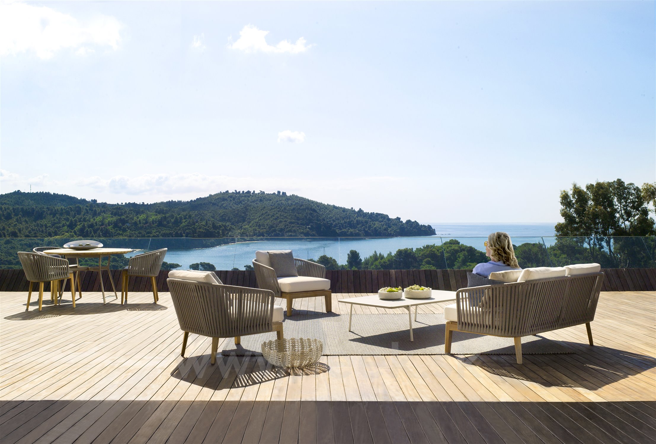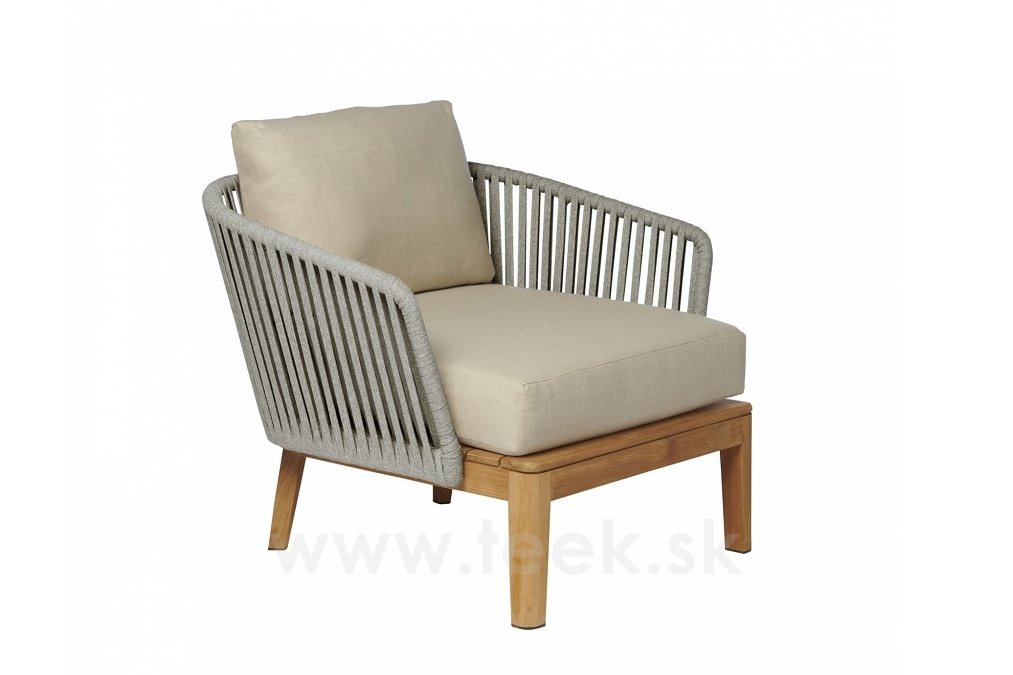 Zľava 50% - Teakové nízke kreslo Mood, Tribu, 91x81x69cm, rám teak, výplet šnúra farba sivá (stonegrey), vrátane podušiek farba sivomodrá (Revive Jaspe)