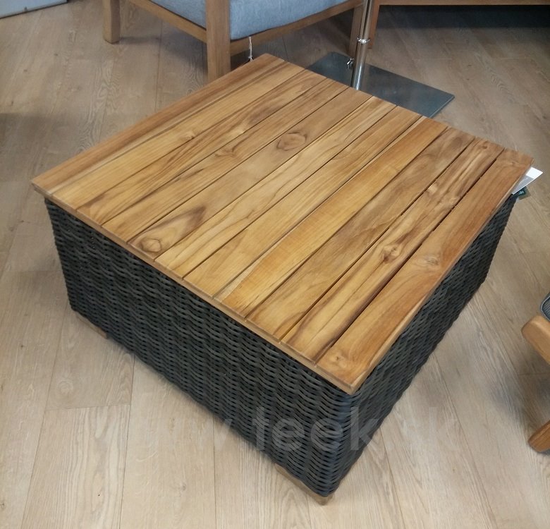 Konferenční stolek Rimini, Persoon, hliníková konstrukce, 82x82x45 cm teaková deska, umělý ratan tmavě šedý (dark grey)