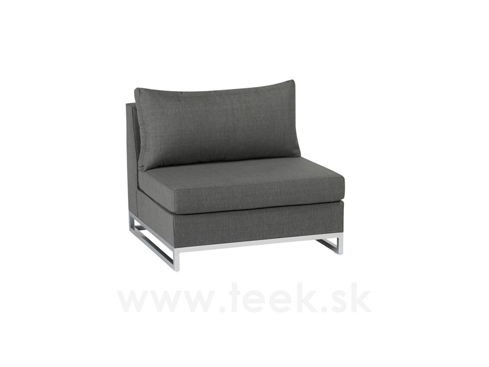 Středový díl Sicilie značky Persoon. Středovým dílem můžete rozšít sedací sestavu Sicilie. Sedací sestava/středový díl má hliníkovou konstrukci, potahy z venkovní látky Nanotex (velmi odolná látka proti povětrnostním vlivům, UV rezistentní, světlostálá, snadno se udržuje a čistí). Výplň sedáků je chráněna voděodolnými obaly, které zabraňují průniku vlhkosti dovnitř.