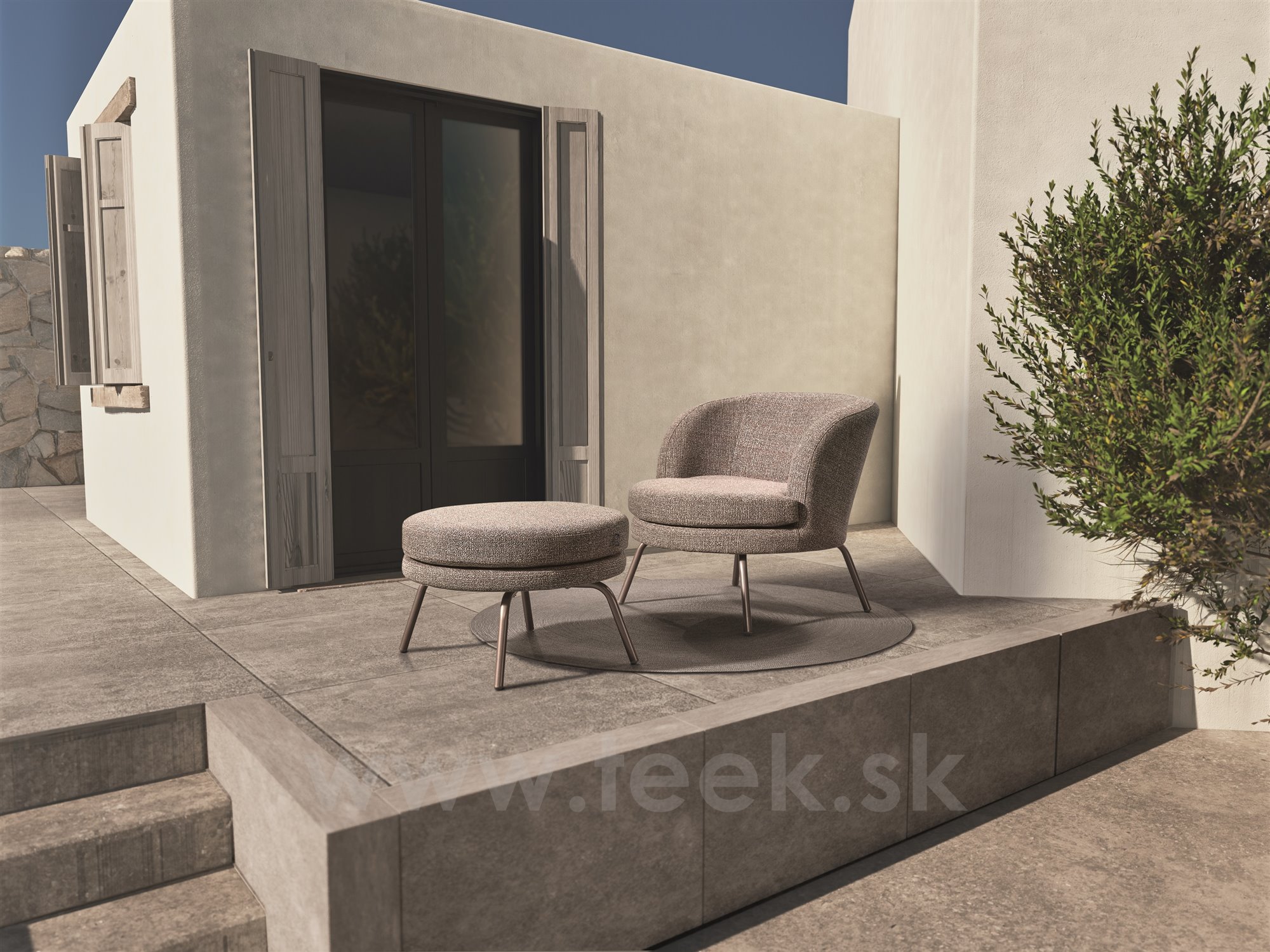 Podnožka Noa, Stern, priemer 64 cm, výška 40 cm, rám lakovaný hliník čierny (black matt), vonkajšia látka farba Mélange grey, rýchloschnúca výplň