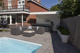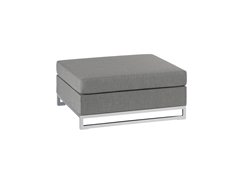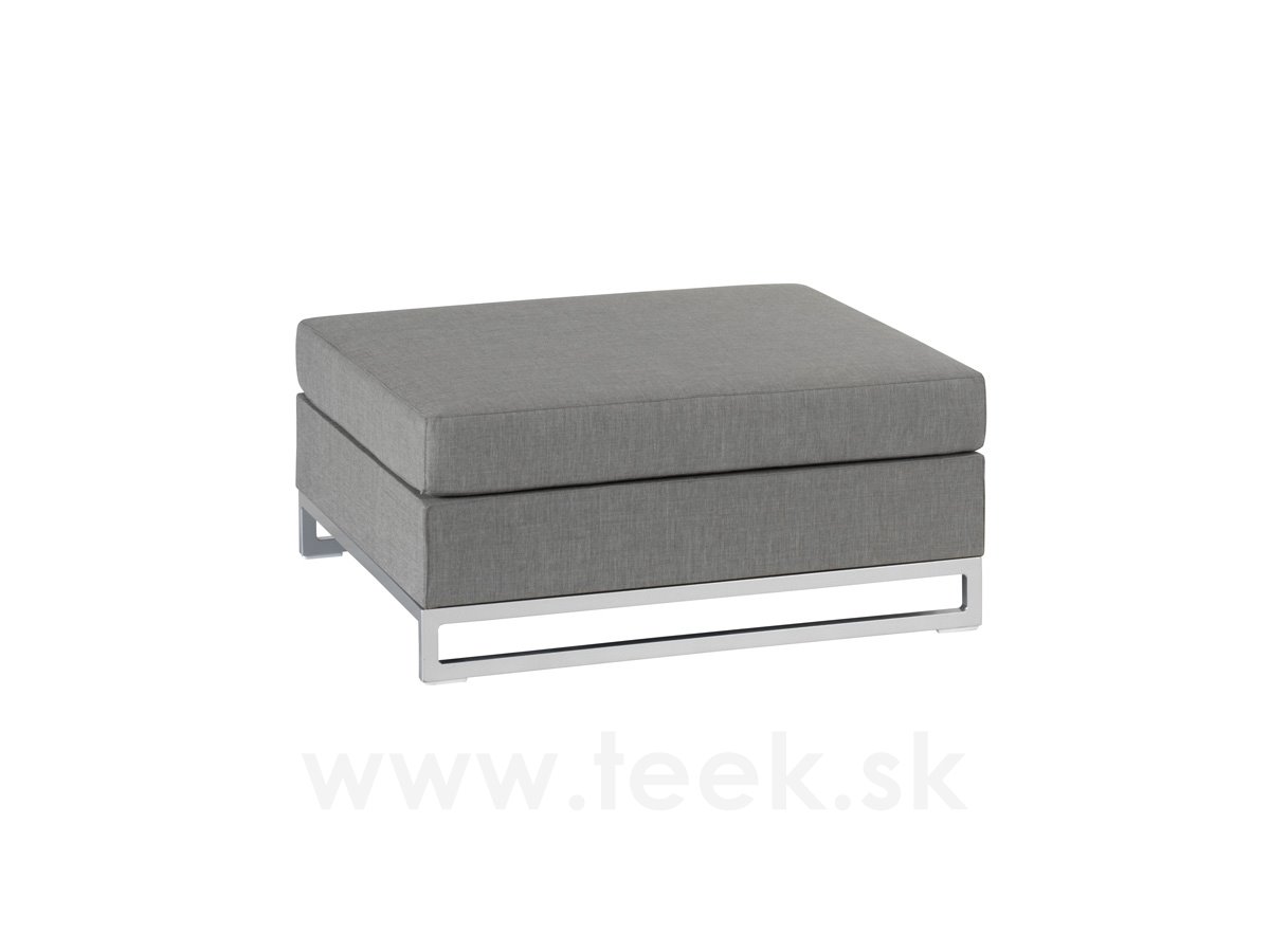 Podnožka k modulové sedací sestavě Rhodos značky Persoon. Jednotlivé díly mají hliníkovou konstrukci, potah z venkovní látky Nanotex (velmi odolná látka proti povětrnostním vlivům, UV rezistentní, světlostálá, snadno se udržuje a čistí), výplň sedáků je z rychleschnoucí pěny Dry foam.