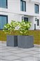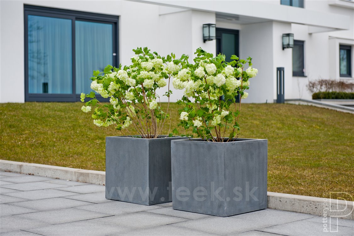 Čtvercové venkovní květináče Block jsou dostupné ve výškách 40, 50, 60 a 70 cm. Jsou vyrobené z kompozitního materiálu Fiberstone v různých povrchových úpravách a barvách.