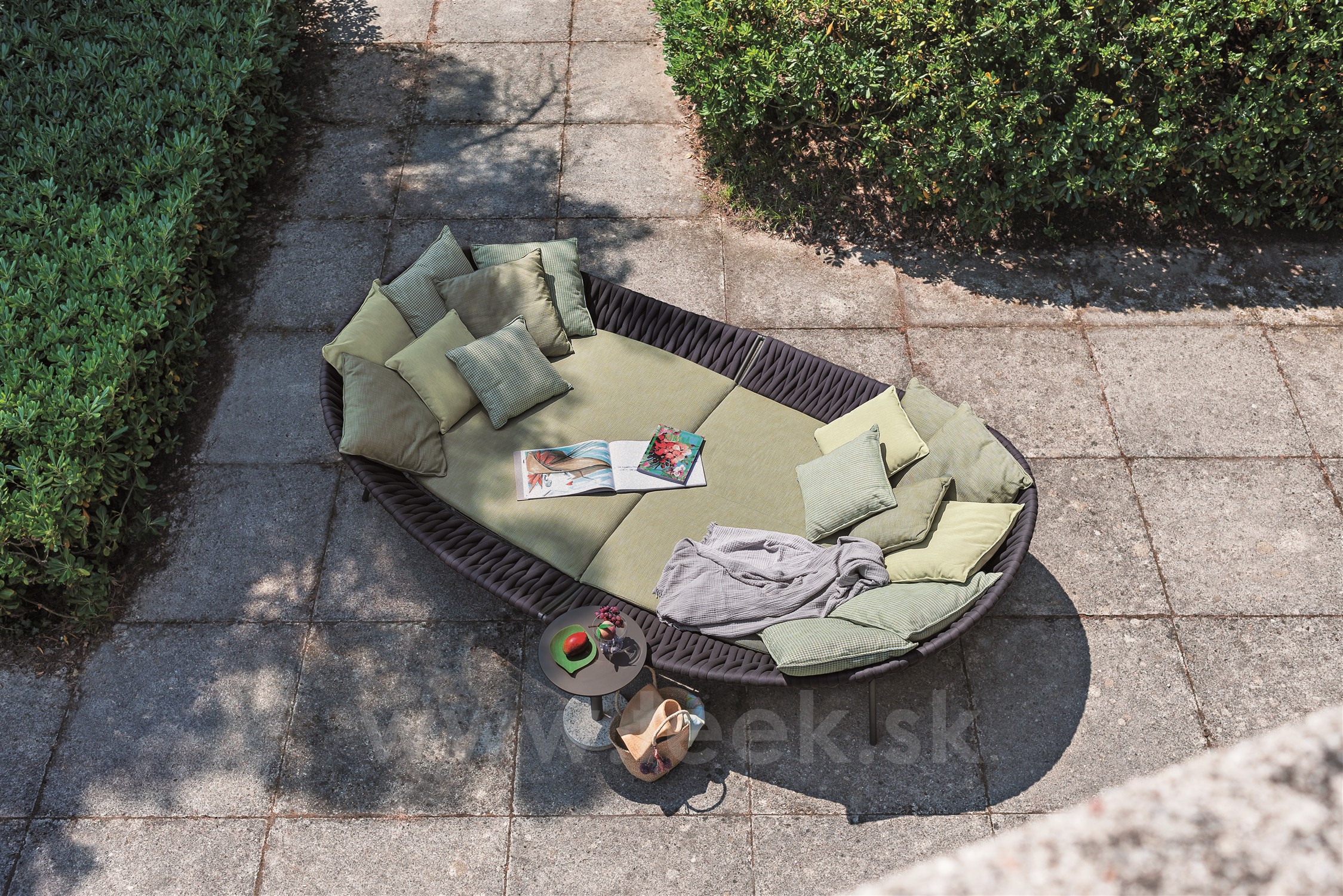 Súčasťou kolekcie je relaxačná záhradná posteľ.